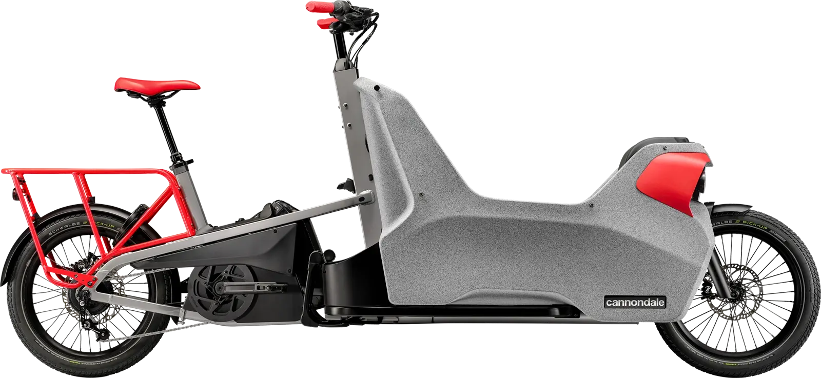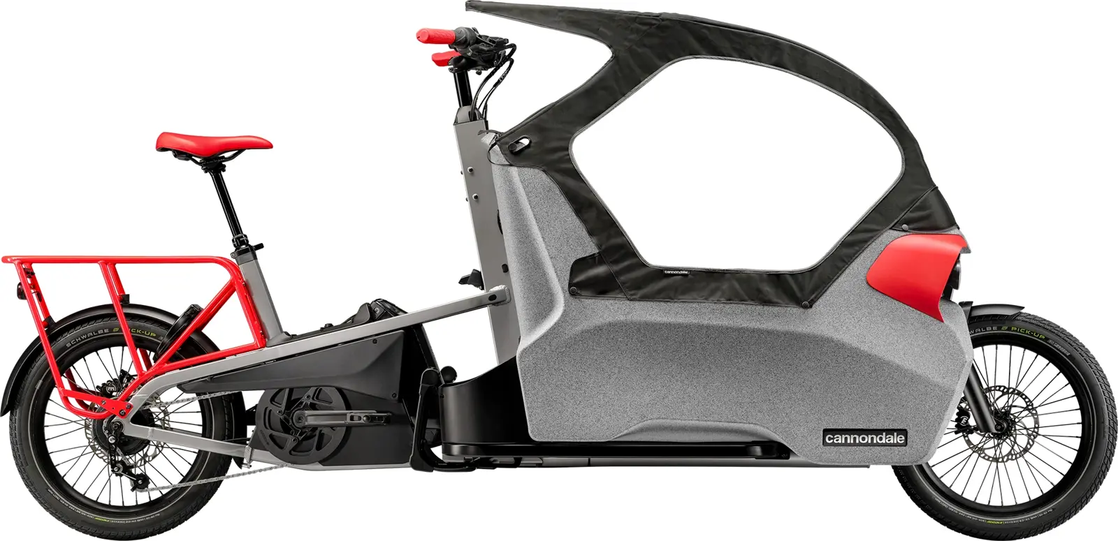- SmartForm C2 Alloy low step cargo frame, cable steering, weatherproof double kid cabin, semi-integrated cable routing, external dual battery compatible, integrated kickstand, integrated utility compartment, kids seat compatible rear rack with Racktime SnapIt 2.0 & trailer hitch mount, dual LED front lights, triple bottle cage mount