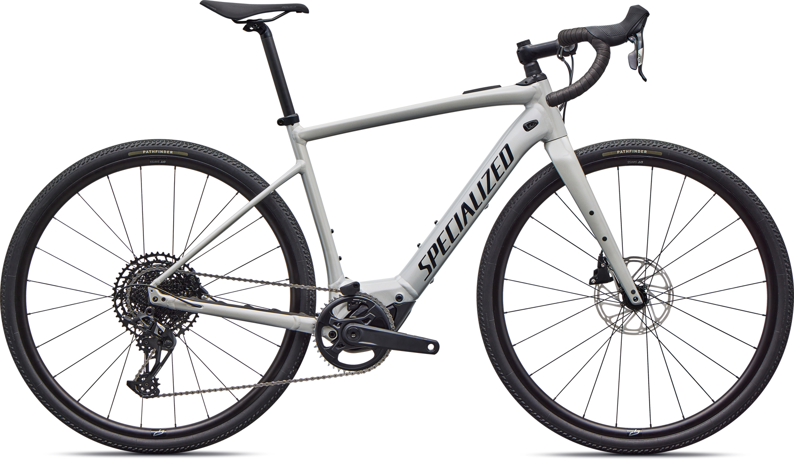 - Specialized E5 Premium Aluminum frame, front/rear thru-axles, fully integrated down tube battery, internal cable routing, fender/rack mounts, 12x142mm, flat-mount disc brakes